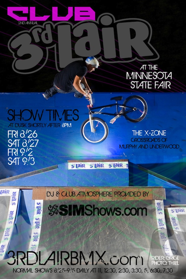 The MN State Fair is known for its rides, competitions in agriculture, culinary arts, and sciences, and the food, most of which is impaled on a stick. BMX isn’t normally synonymous with the State Fair, but check out Club 3rd Lair to see riders get some serious air. Its following is picking up steam and drawing more people each year.